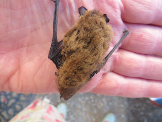 Oh dear, this little feller got himself stuck in the shutter hinge, maybe on a night when the wind blew the shutters open... now it is dessicated. I think it is a Common Pipistrelle, smaller than mon puce, my thumb, a measurement of one inch. I felt sadness.